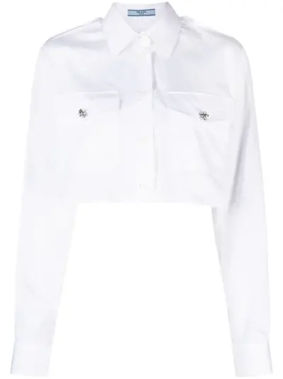 Prada crystal-embellished cropped cotton shirt - 22164553 (LPN208514)