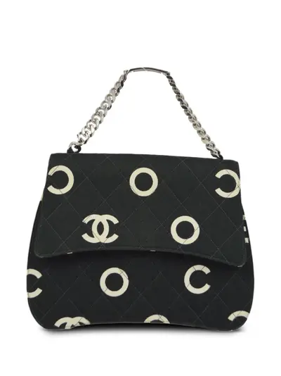 circa 1997 black/white canvas diamond quilting signature all-over Coco print signature interlocking CC logo single chain-link top handle foldover top with magnetic fastening main compartment internal zip-fastening pocket internal slip pocket internal logo stamp silver-tone hardware Serial Number: 4837691 This item comes with an original authenticity seal. This item comes with an original Chanel authenticity card. Condition: GOOD. This previously owned and used item is in good condition with minimal signs of use. This may include fading of material or plating and scratches.