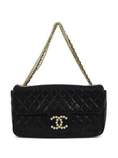 circa 2010 black lambskin diamond quilting signature interlocking CC logo faux-pearl embellishment leather and chain-link shoulder strap front flap closure main compartment internal zip-fastening pocket internal logo patch gold-tone hardware Serial Number: 14472168 Condition: GOOD. This previously owned and used item is in good condition with minimal signs of use. This may include fading of material or plating and scratches.