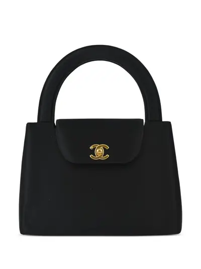 circa 1998 black satin finish single rolled top handle front flap closure signature interlocking CC turn-lock fastening main compartment internal slip pocket slip pocket to the rear gold-tone hardware Serial number: 5202602 Condition: GOOD. This previously owned and used item is in good condition with minimal signs of use. This may include fading of material or plating and scratches.