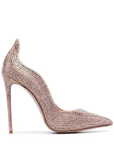 rose gold-tone leather crystal embellishment wavy edges pointed toe slip-on style branded leather insole stiletto heel