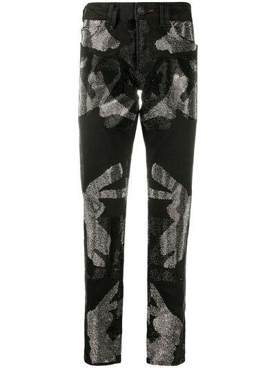 philadelphia stretch-cotton denim/glass camouflage pattern rhinestone embellishment logo patch to the front logo patch to the rear belt loops mid-rise straight leg button fly fastening classic five pockets
