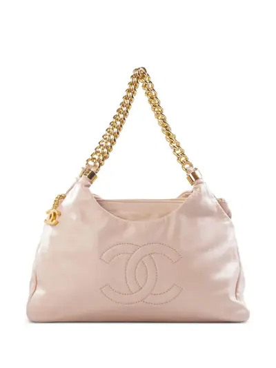 circa 2009 light pink satin logo charm signature stitched interlocking CC logo two chain-link shoulder straps partitioned compartment zip-fastening compartment Condition: GOOD. This previously owned and used item is in good condition with minimal signs of use. This may include fading of material or plating and scratches.