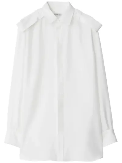 white silk straight-point collar concealed front button fastening epaulettes long sleeves buttoned cuffs straight hem