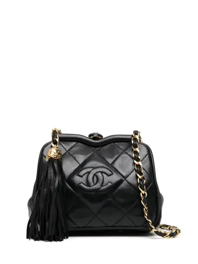 black leather diamond quilting detachable waist belt leather and chain-link detailing signature stitched interlocking CC logo tassel detail clasp fastening main compartment internal zip-fastening pocket gold-tone hardware Serial Number: 1726775