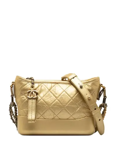 The Gabrielle features a quilted leather body, detachable chain-link leather shoulder straps, a top zip closure, and interior zip and slip pockets. Gold. Serial Number: 24283637. Condition: FAIR. This previously owned and used item is in fair condition with visible signs of use. This may include fading of material or plating, loose stitches, discolouration, patina or heavy scratches. .