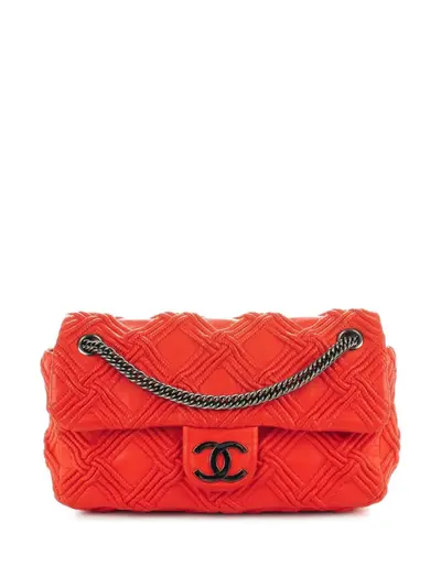 circa 2006 red lambskin diamond quilting signature Bijoux chain front flap closure signature interlocking CC turn-lock fastening main compartment internal slip pocket internal zip-fastening pocket internal logo stamp palladium-tone hardware This piece comes complete with a protective dust bag. Condition: GOOD. This previously owned and used item is in good condition with minimal signs of use. This may include fading of material or plating and scratches.