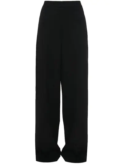 black wool pleat detailing mid-rise concealed front fastening two rear welt pockets straight leg