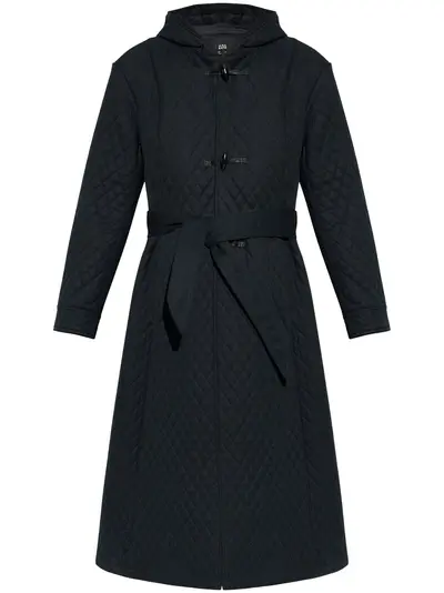 black cotton quilted long sleeves front toggle fastening detachable and adjustable waist belt classic hood