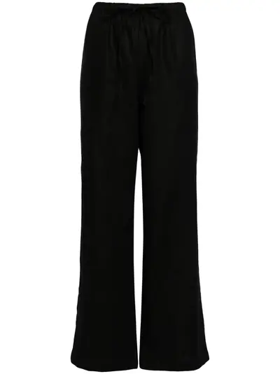 black stretch-design straight leg elasticated drawstring waistband floor-length