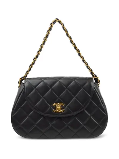 circa 1997 black lambskin diamond quilting leather and chain-link top handle front flap closure signature interlocking CC turn-lock fastening main compartment internal zip-fastening pocket internal slip pocket internal logo stamp slip pocket to the rear gold-tone hardware Serial Number: 4032715 This item comes with an original Chanel authenticity card. Condition: GOOD. This previously owned and used item is in good condition with minimal signs of use. This may include fading of material or plating and scratches.