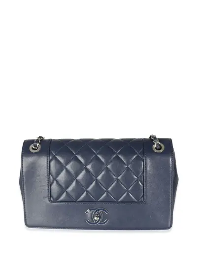 navy blue sheepskin diamond quilting leather and chain-link shoulder strap front flap closure signature interlocking CC turn-lock fastening main compartment internal zip-fastening pocket Condition: EXCELLENT. This previously owned item is in near-perfect condition with no signs of damage or use.