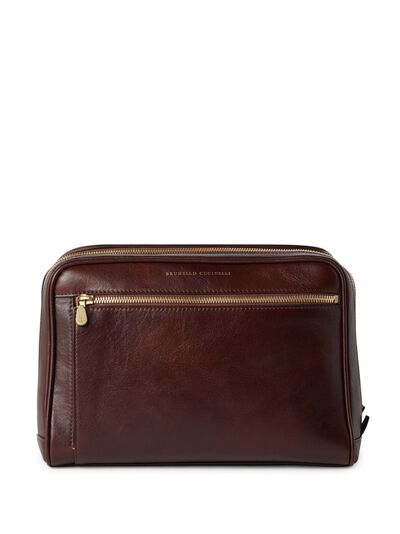 Brunello Cucinelli logo-stamp leather wash bag - 26874312 (LPN241810)