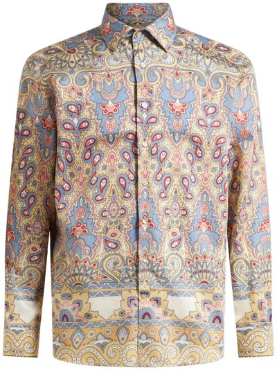 sesame beige front button fastening buttoned cuffs paisley print spread collar