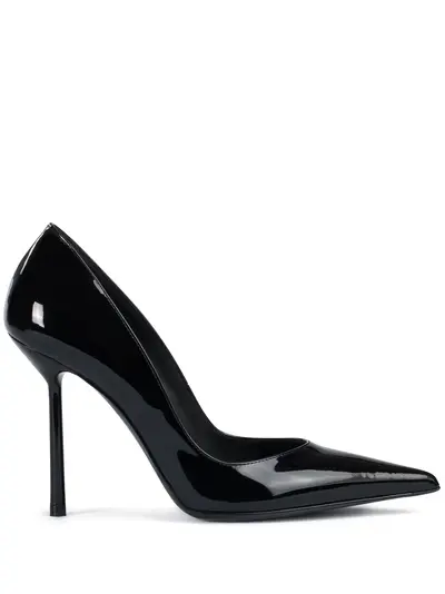 black high heel patent finish pointed toe slip-on style