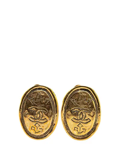 CHANEL Pre-Owned 1980-1990 Gold Plated CC Crown Clip On Earrings costume earrings - 28269649 (LPN245386)