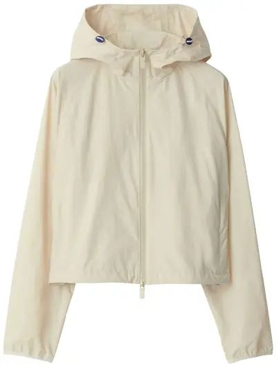 light beige signature Equestrian Knight motif classic hood front two-way zip fastening long sleeves straight hem