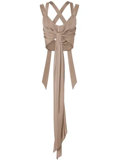 beige self-tie fastening rear criss-cross straps gathered detailing draped strap detailing