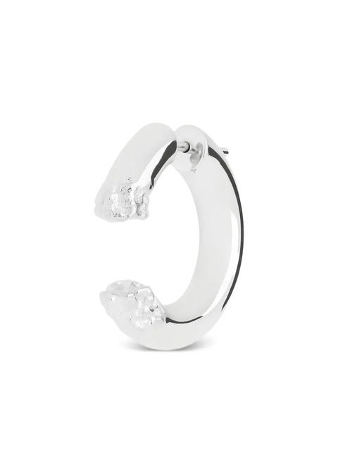 silver-tone sterling silver embossed detail half hoop design stud design huggie hoop design Please consider that this is sold as a single earring.