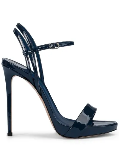 navy blue buckle-fastening ankle strap high stiletto heel branded footbed round open toe