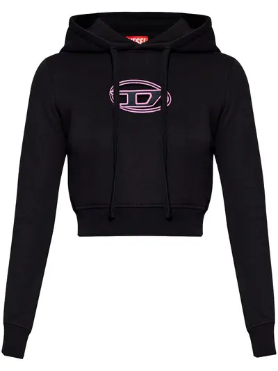 black cotton blend two-tone design Oval D logo plaque cropped drawstring hood long sleeves ribbed cuffs and hem cut-out detailing logo print at the chest