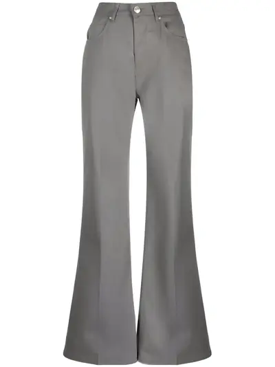 grey cotton belt loops front button and zip fastening logo patch to the rear high-waisted flared classic five pockets