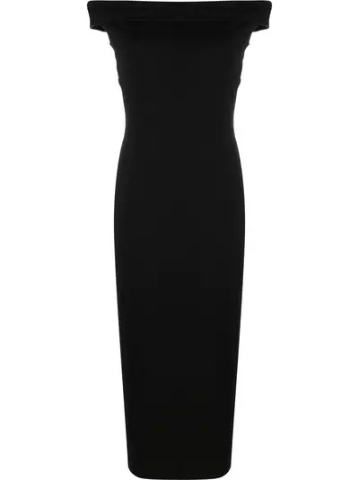 black stretch-design ruched detailing one-shoulder off-shoulder sleeveless mid-length
