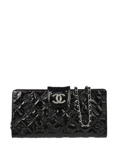 circa 2010 black leather patent finish diamond quilting signature interlocking CC turn-lock fastening leather and chain-link shoulder strap embossed Lucky Symbols motif internal card slots internal note compartments coin pocket contrast lining Serial Number: 14068568 Condition: GOOD. This previously owned and used item is in good condition with minimal signs of use. This may include fading of material or plating and scratches.