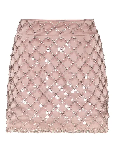 light pink concealed side zip fastening crystal embellishment high-waisted straight hem