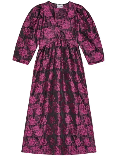 GANNI botanical-jacquard puff-sleeves midi dress - 22029397 (LPN258583)