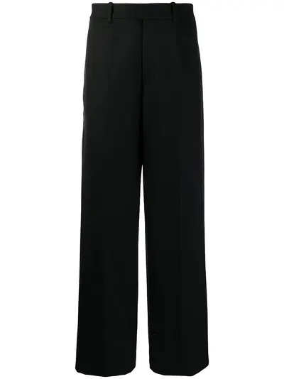 black wool-blend mid-rise belt loops concealed front fastening side welt pocket two rear welt pockets straight leg