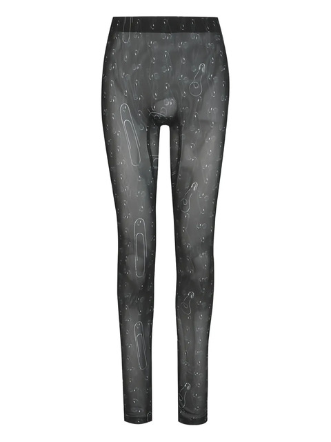 black pull-on style elasticated waistband all-over graphic print semi-sheer construction