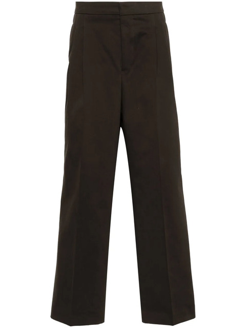 coffee brown cotton pleat detailing pressed crease two side slit pockets two rear button-fastening jetted pockets straight leg front button fly and hook fastening