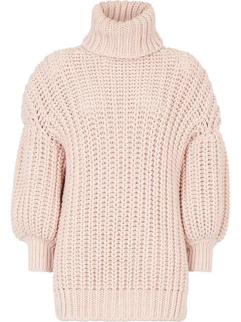 pink wool slouch body side slits ribbed-knit edge drop shoulder short sleeves