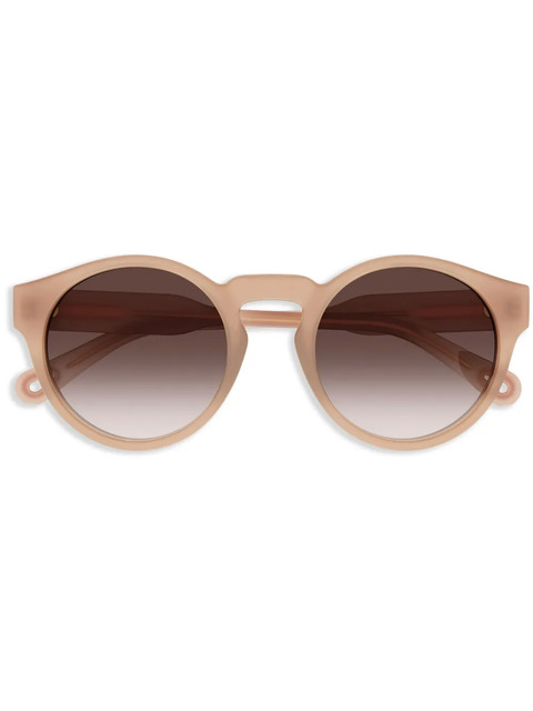 beige acetate round frame gradient lenses straight arms logo print at the arm curved tips These glasses come with a protective case.