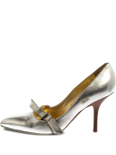 silver bow detail with trim cut-out design stiletto heel leather insole Condition: GOOD. This previously owned and used item is in good condition with minimal signs of use. This may include fading of material or plating and scratches.