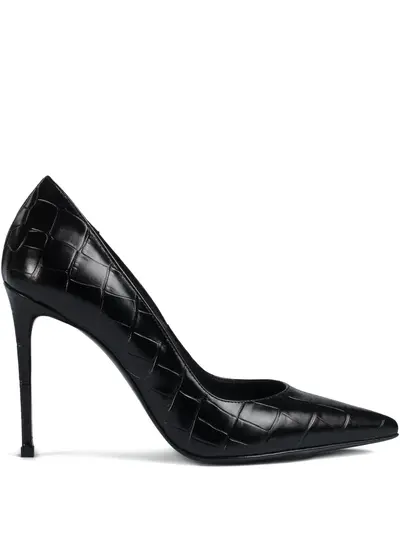 black pointed toe stiletto heel woven pattern detail sleek silhouette