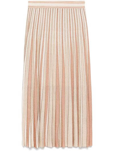 beige elasticated waistband vertical stripe pattern lurex detailing flared skirt