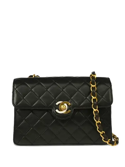 circa 1995 black lambskin quilted pattern leather and chain-link shoulder strap gold-tone hardware signature interlocking CC turn-lock fastening Serial Number: 3809646 This item comes with an original Chanel authenticity card. Condition: GOOD. This previously owned and used item is in good condition with minimal signs of use. This may include fading of material or plating and scratches.