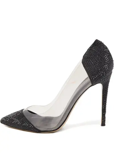 circa 2024 black clear paneling pointed toe crystal detailing leather Condition: GOOD. This previously owned and used item is in good condition with minimal signs of use. This may include fading of material or plating and scratches.