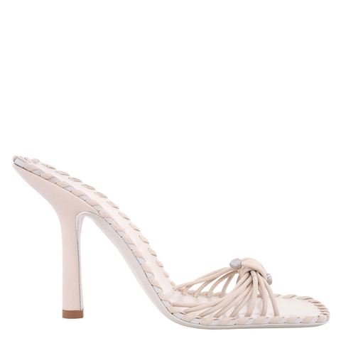Burberry Ladies Sandals. SKU: 8090188. Color: Soap. Burberry Leather Rumba Heeled Sandals. A pair of Leather Rumba Sandals, expertly crafted in Italy from supple nappa leather, featuring a sleek stiletto heel and intricate whipstitch detailing. The design is accented with shield hardware on the straps, while the leather sole is embossed with the signature Equestrian Knight Design. Finished with a sophisticated squared toe and a leather insole for refined elegance. Heel height: 10.5cm/4.1in. 100% lambskin. Made in Italy. <br/><br/><b>Please visit the brand website for sizing information.</b>