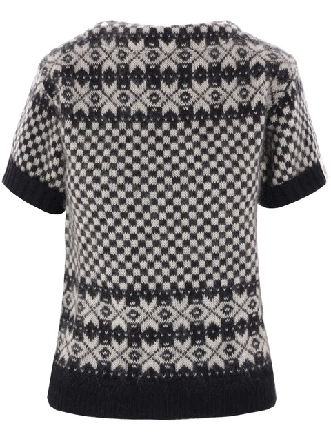 black/white mohair blend patterned intarsia knit mock neck short sleeves logo patch to the front straight hem