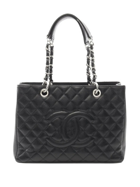 circa 2012 black caviar leather quilted pattern chain shoulder straps top handle Condition: EXCELLENT. This previously owned item is in near-perfect condition with no signs of damage or use.