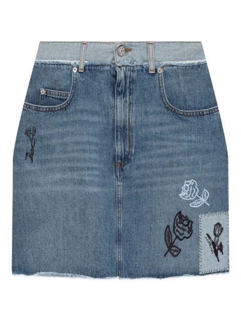 Marni embroidered frayed denim mini skirt - 31577849 (LPN288075)