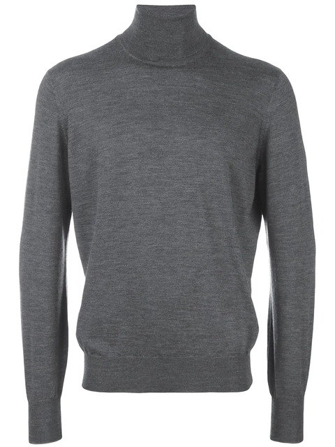 Grey wool/cashmere blend turtleneck jumper from Brunello Cucinelli.