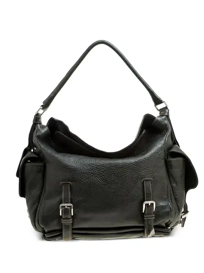 dark green leather/canvas single top handle flap pockets buckle detailing Condition: GOOD. This previously owned and used item is in good condition with minimal signs of use. This may include fading of material or plating and scratches.