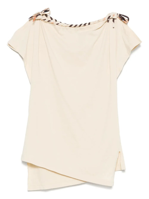 light beige boat neck open-shoulder sleeves asymmetric hem