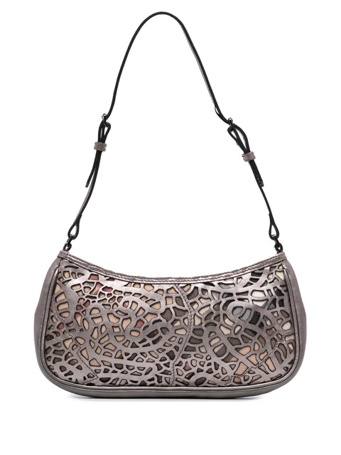 cutout leather body with nova check canvas details adjustable flat leather strap top zip closure interior slip pocket silver Serial Number: ITEFFSRL814FIR Inclusions: dust bag. Condition: GOOD. This previously owned and used item is in good condition with minimal signs of use. This may include fading of material or plating and scratches. Please refer to the photos on this product page for a detailed view of the item, including any damages declared.