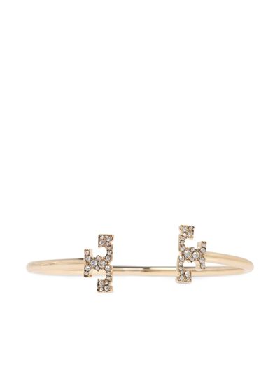 gold-tone 18kt gold plated polished finish signature Double T motif crystal embellishment open cuff design Normal everyday use and external agents may reduce the lustre of gemstones and gold surfaces. To maintain, use specific, non-abrasive products specially meant for cleaning jewellery.