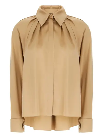 beige concealed front button fastening long sleeves buttoned cuffs pleat detailing